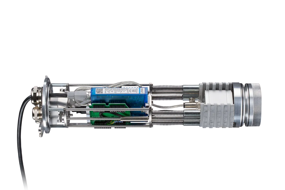 확장형 모델은 PI NetBox, USB Server Gigabit, Industrial Process Interface 등 추가 구성 요소도 장착할 수 있습니다. 내구성이 뛰어난 V2A 소재로 제작되었으며, IP65 등급의 방진·방수 성능과 에어 퍼지(Air Purge) 기능을 갖추어 적외선 센서의 광학 부품을 항상 깨끗하게 유지합니다.