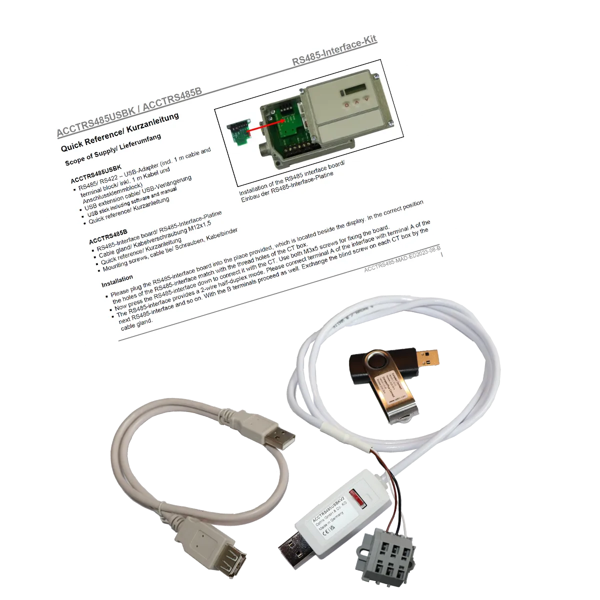 Scope of Supply- RS485/422-USB 어댑터 1개- 단자 블록 1개- USB 연장 케이블 (40 cm) 1개- 소프트웨어 USB 스틱 1개- 퀵 레퍼런스 1부