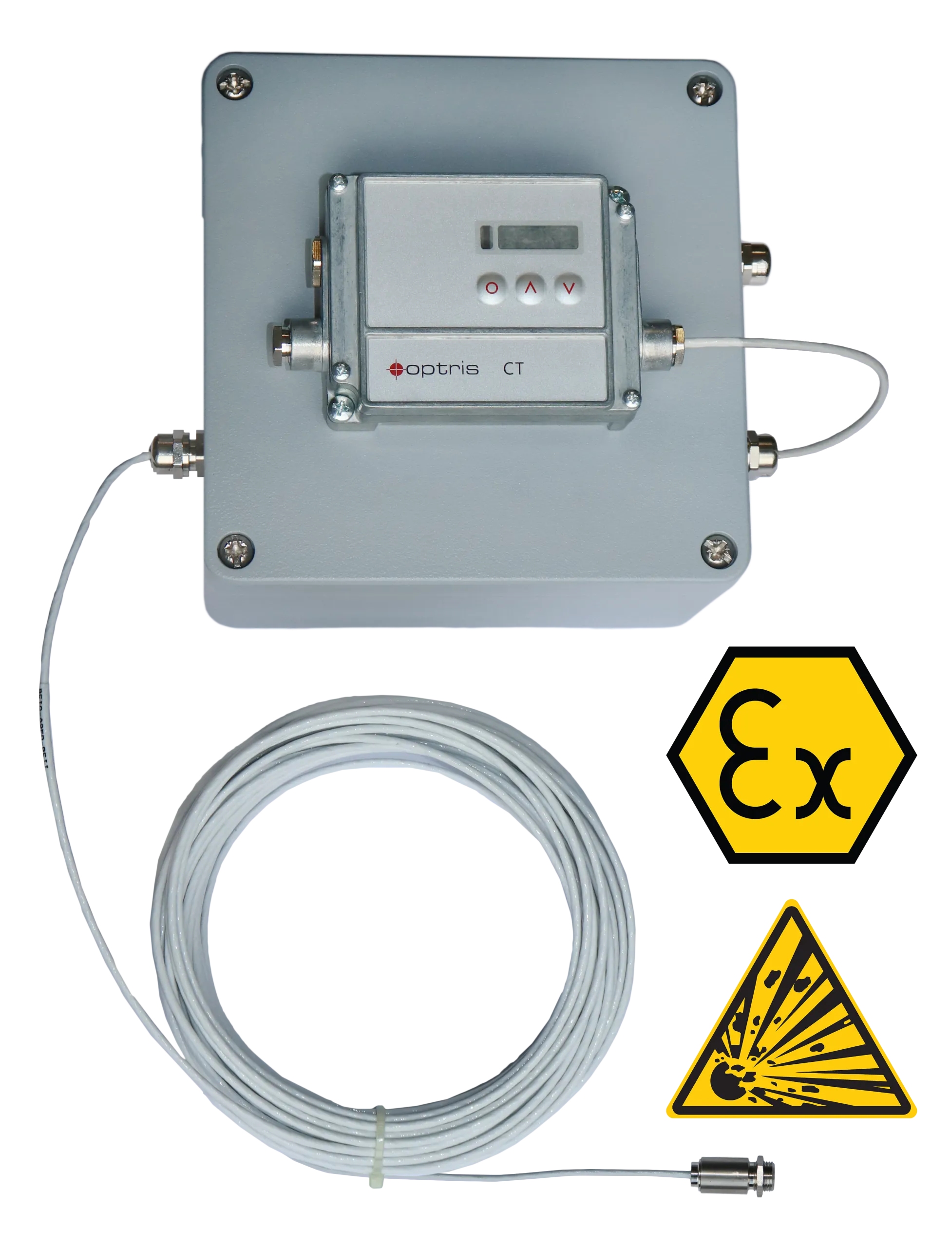 CTex는 폭발 방지 센서를 설치해야 하는 위험 구역(ATEX)에서도 사용이 가능한 적외선 온도계 입니다. CTex 적외선 온도계는 제너(Zener) 이중 장벽을 장착하여 폭발 위험이 있는 환경에서도 안전하게 사용할 수 있도록 설계되었습니다. 이를 통해 ATEX 구역에서의 안정적인 운용과 추가적인 보호 기능을 제공하며, 원격 온도 모니터링 솔루션에서 신뢰감을 높입니다. CTex LT 시리즈는 CT LT 시리즈와 동일한 센싱 헤드를 갖추고 있으며, 동일한 성능 특성을 제공합니다. 이 적외선 센서 헤드는 최대 22:1의 광학 해상도와 8–14 µm의 파장대역을 지원하여 고방사율 대상물 측정에 적합하며, -50 °C에서 975 °C까지의 넓은 온도 범위를 지원합니다.