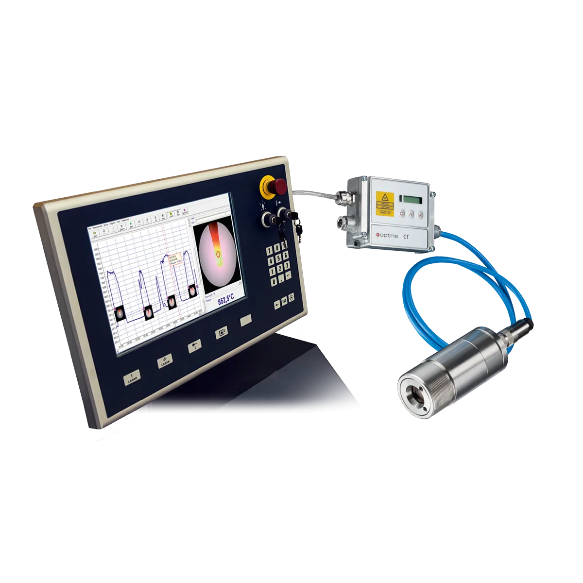 Optris CTvideo 3M 시리즈는 산업 환경에서 비접촉 온도 측정과 영상 감시를 통합한 적외선 온도계로, 직접 접촉이 어려운 상황에서도 이상적인 솔루션을 제공합니다. 통합 비디오 조준 기능을 통해 까다로운 환경이나 극한 온도에서도 정확한 측정 지점을 쉽게 확인할 수 있습니다. 비디오 조준과 레드 십자 레이저를 병행하면 센서 정렬이 간편해지고, 설치 과정이 효율적이며 정확한 측정을 보장합니다.