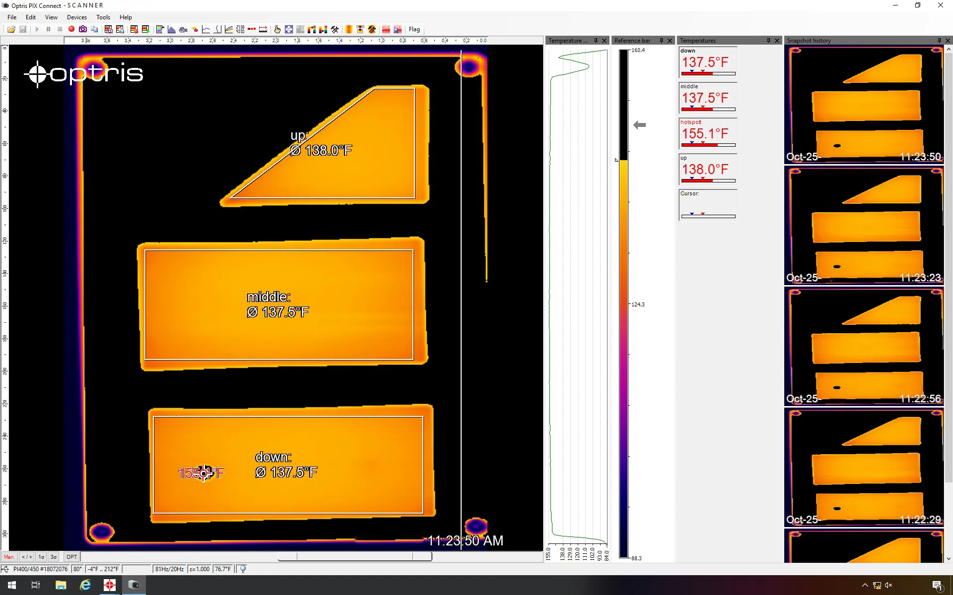 PIX Connect 소프트웨어는 핫/콜드 스팟 검색, 히스토그램, 프로파일, 이미지 차감, 알람, 녹화/재생 기능을 제공하여 공정 엔지니어가 한 도구에서 모든 분석을 수행할 수 있습니다. 실시간 또는 저장된 열화상 영상에서 개별 픽셀의 보정 온도를 추출할 수 있어 품질 문서화도 추적 가능합니다.